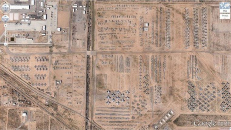 Cimetière d’avions (32 08’59.96″ N, 110 50’09.03″W) Tucson, Arizona