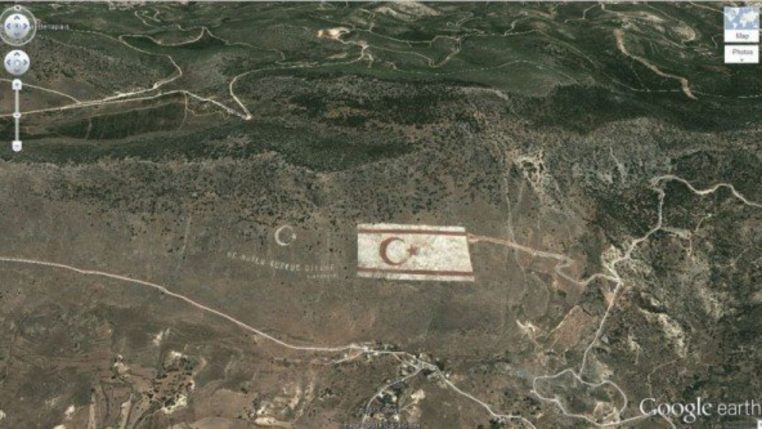 Drapeau géant de Chypre du Nord (35.282902, 33.376891) Kyrenia, Chypre