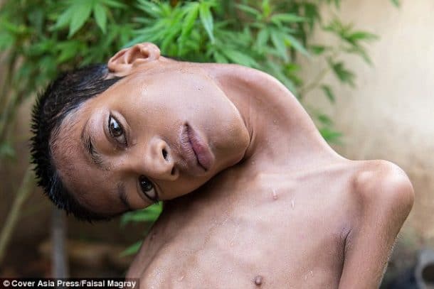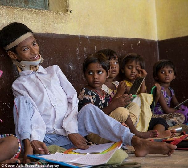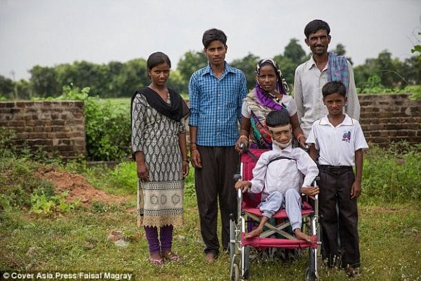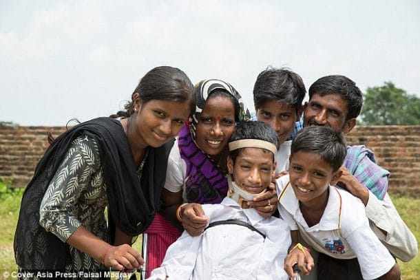 Mahendra Ahirwar est un jeune homme de 13 ans qui a eu des débuts bien difficile dans la vie… En effet, lorsqu’il est né dans l’état du Madhya Pradesh en Inde, tout allait pour le mieux. Mais au fil du temps, il a développé une maladie musculaire qui a fait qu’il s’est retrouvé la tête totalement penchée sur le côté. Et depuis l’âge de deux ans, il subit ce terrible handicap. Malheureusement, il n’a jamais pu et surtout voulu être scolarisé…Le regard des autres étant trop dur à supporter. Alors au fil du temps, le jeune homme s’est renfermé sur lui-même. Son cou le faisait souffrir et son malaise lié à ce handicap encore plus. Ses parents ont même perdu espoir et se disaient qu’ils allaient le perdre. Ils se demandaient même si ça n’aurait pas été mieux pour lui d’ailleurs. Il était incapable de marcher, de se tenir debout seul, de manger seul et même de se tenir seul aux toilettes.