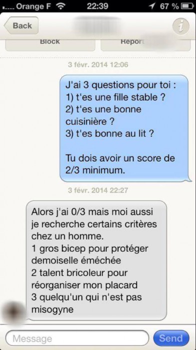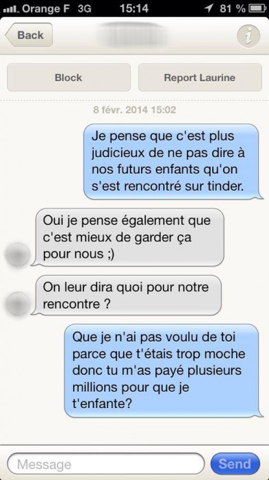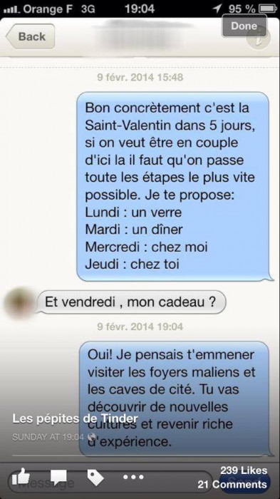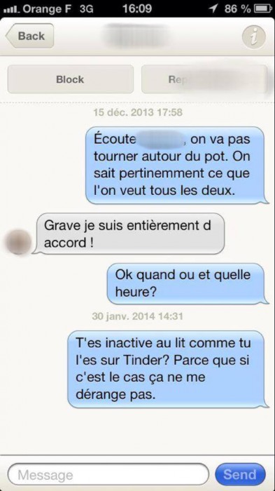 TDN > Insolite DRAGUE : 82 conversations Tinder qu’on aurait voulu ne jamais lire… Publié par Jeanne Tilly le 19 Juil 2023 à 10:15 Suivez nous sur Google News Partagez cet article 71. 72. 73. 74. Veuillez laisser ce champ videRejoignez nos 875 726 abonnés en recevant notre newsletter gratuite N'oubliez pas de cliquer sur l'email de validation pour confirmer votre adresse email. Si vous ne l'avez pas recu vérifiez dans vos spams. Dernière étape pour confirmer votre inscription : il faut cliquer l'email de confirmation. Vérifiez dans vos spams si vous ne l'avez pas reçu ! A bientôt ! Page précédente Page suivante Laissez un commentaire Votre adresse e-mail ne sera pas publiée. Les champs obligatoires sont indiqués avec * Votre commentaire * Votre pseudo * Votre adresse e-mail * Cliquez ici pour commenter
