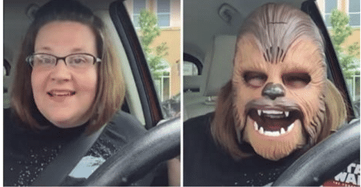 100 millions de vues et presque 2 millions de réactions sur cette vidéo jusqu’à présent pour cette vidéo postée le 19 Mai sur Facebook par Candace Payne ! Cette femme est une fan de Star Wars et elle s’est fait un masque Chewbacca ! Toute excitée, elle va se filmer en train d’enfiler son masque… elle est folle comme une enfant qui déballe ses jouets à Noël ! Et Candace va se payer un fou rire hystérique totalement dingue et communicatif… Elle a légendé sa vidéo de « Le joies simples de la vie »… Visiblement ce masque a fait vraiment très plaisir à Candace et en quelques jours, elle a fait un buzz phénoménale !
