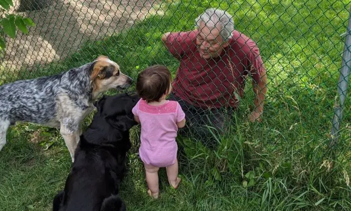 Dès que la fillette était en âge de manger des aliments solides, le voisin a décidé de lui faire une surprise. Il a décidé de lui offrir un biscuit à l’avoine tout juste sortie du four. Ramona a rapidement réalisé à quel point ses frères chiens étaient chanceux. Maintenant qu’elle peut se déplacer comme bon lui semble, elle n’hésite pas à trottiner vers la clôture pour rejoindre ses chiens afin d’obtenir des friandises. Bien sûr, leur voisin très généreux donne aux chiens quelques friandises de plus. « Ils reçoivent leur friandise au petit déjeuner, à l’heure du déjeuner, à la pause-café et à l’heure du coucher », raconte Whalley. « Pour le coucher, ils grugent leur plus gros os pour « se brosser les dents ». Il a également ajouté : « Ramona se joint habituellement à eux en après-midi pour obtenir sa friandise et c’est généralement un cookie ou quelques biscuits Ritz« . Maintenant que la fillette fait partie du groupe, Gary est très heureux de pouvoir lui faire plaisir. On espère que leur belle amitié continuera !