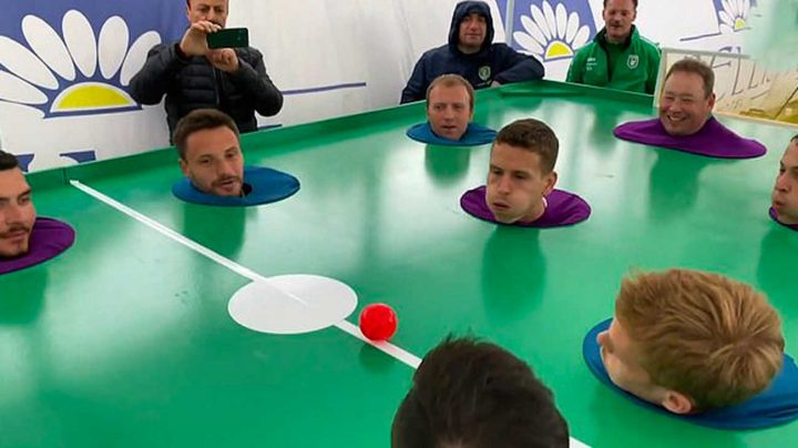 Une partie de football qui se joue uniquement avec la bouche en soufflant sur la balle