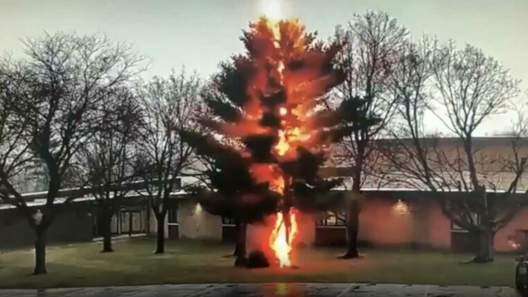 La foudre s’abat violemment sur un arbre et le détruit (vidéo)