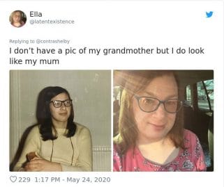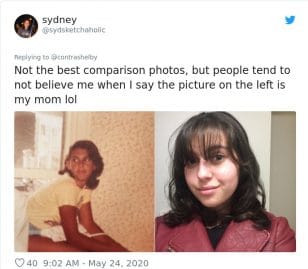 « Ce n’est pas les meilleure photos de comparaison mais les gens ne me croient pas quand je leur dis que la photo à gauche c’est ma mère »