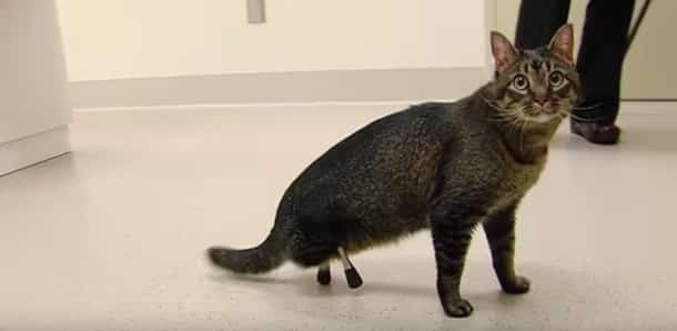 Les humains ne sont pas les seuls à bénéficier de prothèses. Elles appareillent de plus en plus chiens et chats avec succès. Vincent fait partie de ceux-ci. Ce chat est né avec les pattes de derrière atrophiées. Abandonné au refuge du Nevada, il a été recueilli par Cindy Jones qui n’a pas résisté au charme de la petite boule de poils.