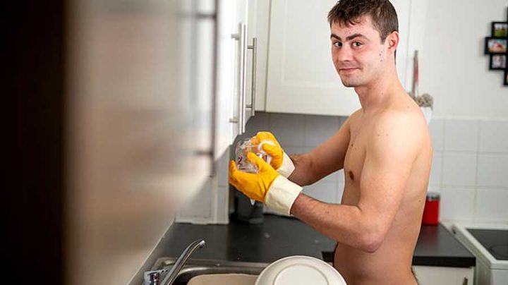 Daniel Aitken, 26 ans, a un rêve : s’acheter une maison. Un rêve moins évident à atteindre lorsqu’on n’a pas d’argent et qu’on vit chez ses parents sans travailler. Alors, il a décidé de se bouger et de lancer une société. Dans un premier temps, il trouvait cette idée drôle, mais il n’avait pas imaginé qu’il serait overbooké dès la première semaine. Il a eu l’idée d’aller faire des ménages, sans vêtements. La seule chose qu’il porte sur lui sont ses gants en latex. « Jusqu’à présent mes clients ont voulu être présents quand j’étais là et souvent ils me suivent de pièce en pièce afin de discuter avec moi pendant que je nettoie. Je suis très multitâche », assure le jeune homme lui-même stupéfait par le succès de son petit business.