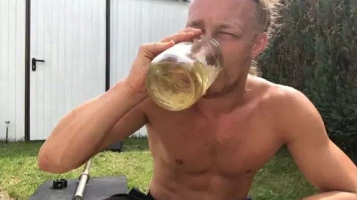 À 26 ans, Jan Schünemann a une santé de fer ! Il faut dire que tous les jours, il entretient son corps avec soin en buvant jusqu’à 3 litres de son urine sous forme de 7 pintes par jour. Mais il ne s’arrête pas là puisqu’il s’en met sur tout le corps, des oreilles au nez en passant par les yeux. « Jai découvert cette thérapie (Shivambu Kalpa) sur Internet. J’ai donc commencé, j’ai essayé et tout de suite, les bénéfices ont été si incroyables que j’ai su que je voulais continuer. »