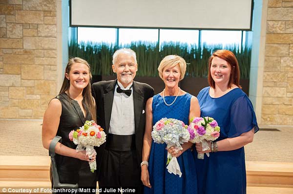 La cérémonie a eu lieu à l’église de Watermark Community à Dallas. Aucune de ses filles n’était fiancée mais il tenait à faire ce geste afin de leur prouver son amour. Il a ensuite surpris sa femme, en lui demandant de renouveler leurs vœux, lui promettant de continuer à l’aimer même lorsque la mort l’aura emporté.