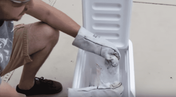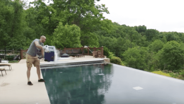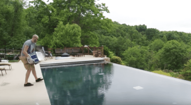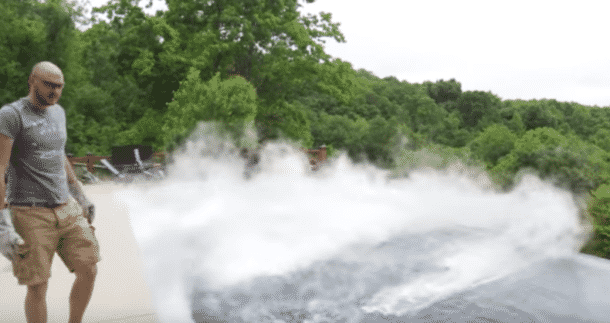 Il lance 15 kilos de glace dans une piscine…regardez le résultat ! Bluffant… (vidéo)