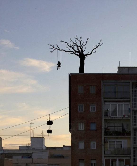 L’artiste Pejac a décidé de prendre le problème à bras le corps et a invent un art qui permettait de redessiner la ville. Le principe est simple : sans impacter les paysages urbains, il se contente de dessiner sur ses fenêtres pour créer un tout autre univers. En ajoutant des silhouettes miniatures sur les fenêtres, il parvient à insuffler un peu de poésie dans le quotidien…