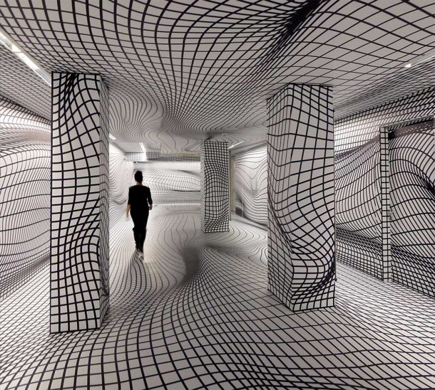 Les illusions d’optique, vous aimez ça ? Si votre réponse est oui, alors vous allez kiffer cette œuvre de Peter Kogler. Cet artiste autrichien est né à Innsbruck en 1959. Aujourd’hui, il réside et travaille à Vienne. Il est d’ailleurs l’un des pionniers de l’art généré par ordinateur. En effet, ses œuvres sont plutôt impressionnantes et risquent de vous faire tourner un peu la tête. Il s’agit de diverses pièces dont les murs sont savamment décorés. De la sorte, les visiteurs ont l’impression que les murs ne sont pas tout à fait droits.