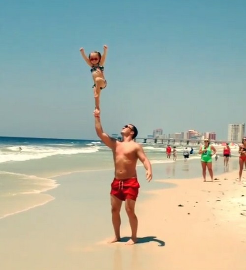 Emerson, âgée de 2 ans, s’est fait connaître via le compte Instagram de son papa, Andrew Decker. Un compte dans lequel il publie des photos et vidéos de leurs superbes acrobaties qu’ils réalisent à la plage à la piscine ou encore en plein cœur de New-York. Beaucoup d’entre vous doivent se demander comment est-ce possible qu’une petite fille de 2 ans sache faire de telles figures ? Son père explique que, dès les 3 mois d’Emerson, il l’entraînait à « faire la pom-pom girl« . En tout cas les entraînements auront porté leurs fruits ça c’est clair !