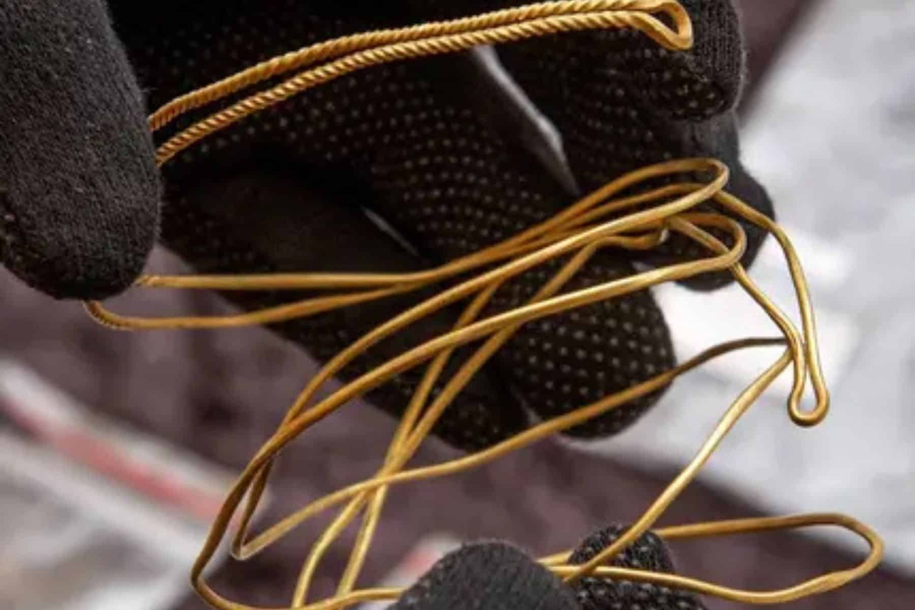 Le jeune homme a repéré sur une pente des traces creusées par des sangliers et a remarqué un fil sortant du sol. Au début, il pensait qu’il s’agissait d’un piège de braconnier, mais il s’est rapidement rendu compte qu’il s’agissait d’or, et que plusieurs fils étaient enterrés.