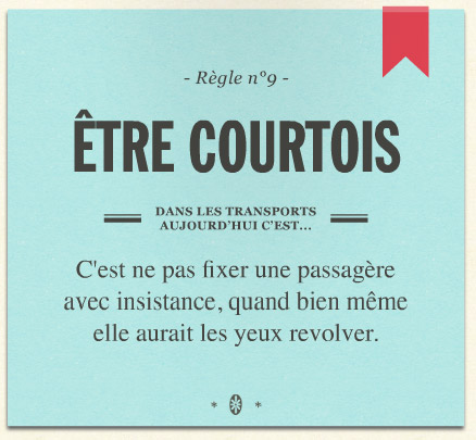 Chaque règle de bienséance est accompagnée d’une petite illustration vintage et/ou d’un texte qui souligne la véracité du propos. La RATP a donc joué la carte de l’humour et du vintage tout en gardant un esprit décalé. Que vous fassiez partie de la tribu des « têtes baissées » ou non, ce manuel vous intéressera !