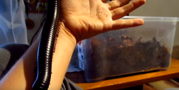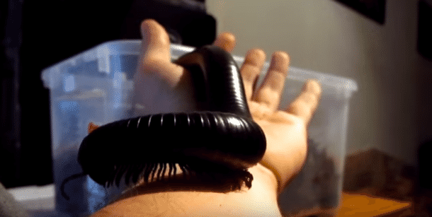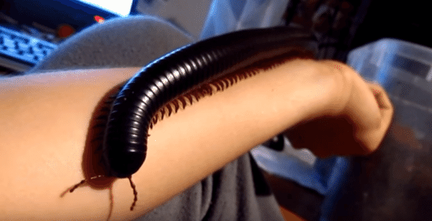 Il laisse un mille-pattes géant se balader tranquillement sur son bras…