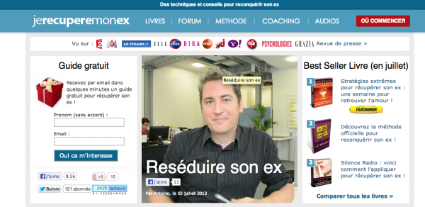 En 2008, Antoine Peytavin rachète le site jerecuperemonex.com créé il y a quelques années plu tôt par un étudiant. Le site draine aujourd’hui un trafic de 15 000 visiteurs quotidiens ( 15 000 personnes chaque jour dans le désespoir ? OMGOOOOD). En 2010, il lance les consultations psy dédiées aux relations amoureuses par téléphone : 57€ les 45 minutes.