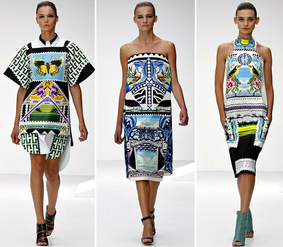 La robe motif aztèques de Mary Katranztou ! Belle harmonie de couleur mais les motifs cassent l’aspect visuel de la robe… On a l’impression de voir des timbres postes ou des foulards d’il y a vingt ans!