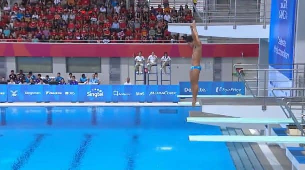 Cette scène ne se déroule pas aux JO 2016 de Rio mais peut-être étiez vous passé à côté l’an dernier ? John Elmerson Fabriga fait partie de l’équipe Philippine de plongée et durant les jeux d’Asie du Sud-Est qui se sont déroulés l’an dernier à Singapour, son saut n’est pas passé inaperçu… En effet, le pauvre a fait un plat monumental et a du bien se faire mal… On peut également voir sur la vidéo le saut de John David Pahoy qui semble moins douloureux mais pas vraiment académique…