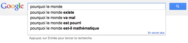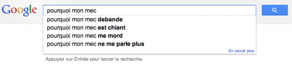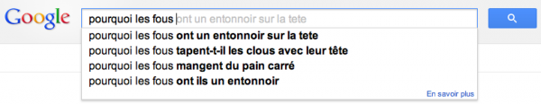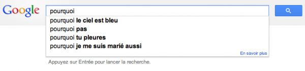 Alors d’après tout ce que vous allez voir, on se dit que les français sont quand même bizarres… Découvrez toutes vos interrogations secrètes que vous pensiez cachées par l’immense moteur de recherche ! Et vous trouverez aussi ce que les étrangers se demandent sur les français…