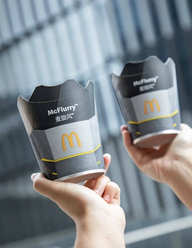 C’est donc l’emballage d’un McFlury que McDonald’s a imaginé pour faire référence au Cybertruck, véhicule incontournable de la marque.