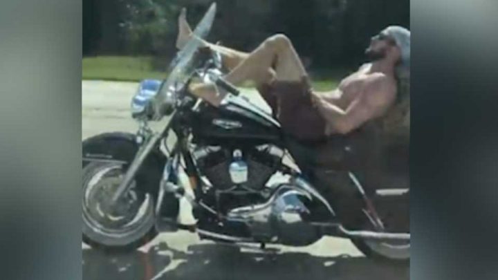 Quand on emprunte l’autoroute, on ne s’attend pas à faire ce genre de rencontres. Un homme totalement à son aise conduisait sa moto allongé sur son deux-roues. Un automobiliste qui le dépassait a filmé la vidéo ci-dessus lorsqu’il l’a croisé. Le dangereux motard ne porte pas de casque et dirige le guidon avec ses pieds, complètement couché sur sa moto.