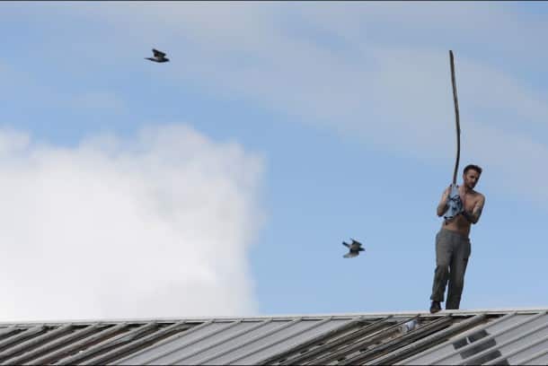 Une fois rendu là, il s’est amusé à se dévêtir partiellement, à faire le spectacle, à jouer les funambules, à faire du toboggan sur la toiture. Les rues adjacentes ont été fermées à la circulation, et il a réussi à tenir toute une nuit sans se faire déloger.