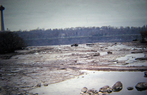 Evidemment, les chutes du Niagara ne se sont pas arrêtées toutes seules naturellement. C’est l’armée américaine qui avait détourné l’eau des chutes pendant 6 mois. L’armée avait entrepris cette tâche colossale pour pouvoir faire des travaux. Les travaux étaient nécessaires pour maintenir les chutes du Niagara en état. Leur érosion était très rapide et elles reculaient de 3 mètres chaque année. L’armée a donc débarassé la rivière des pierres qui provoquaient l’érosion. C’est à ce moment là que les passerelles qui longent les célèbres chutes d’eau ont été construites.