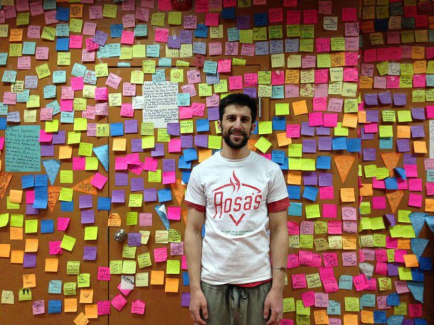 Une quarantaine de sans-abri continuent de se nourrir régulièrement dans cette pizzéria de Philadelphie. De Wall Street à la pizza, Mason profite de son temps pour faire ce qu’il aime tout en aidant les autres ! Les post-it colorés témoignent de l’affection qu’on lui porte aujourd’hui.