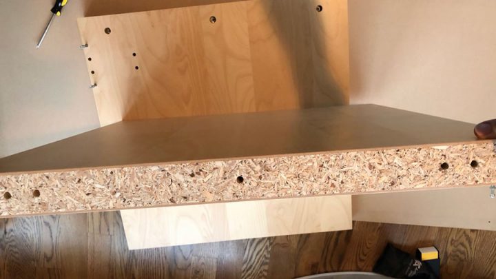 « Hier soir, j’ai scié mon bureau et j’ai découvert que la planche de contreplaquée est un leurre ». Bien entendu, on savait tous que les matériaux utilisés étaient pensés pour être les plus légers possibles. C’est pourquoi, la plupart des planches de bois utilisées ne sont pas en bois massif mais en contreplaqué. Cela veut dire qu’il s’agit d’un bois composé de copeaux ou de morceaux de bois, collés ensemble, puis recouverts d’une fine plaque de bois de chaque côté, pour donner l’impression qu’il s’agit de bois massif.