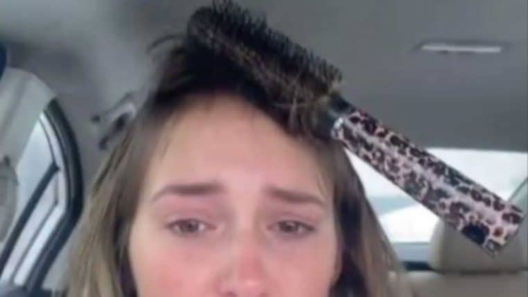 Alyssa Hinton a partagé une série de vidéos sur son compte TikTok. La jeune femme apparait en larmes dans sa première vidéo. Entre deux sanglots, elle pousse des injures et se plaint de son sort. « Je vais devoir me faire couper les cheveux parce que j’ai utilisé la p**** de mauvaise brosse », s’exclame-t-elle. Alyssa apparait dans sa vidéo avec une brosse coincée dans sa mèche de cheveux complètement emmêlée. « Vous vous rendez compte combien c’est embarrassant de devoir se trimballer en ville avec une brosse coincée sur la tête ».