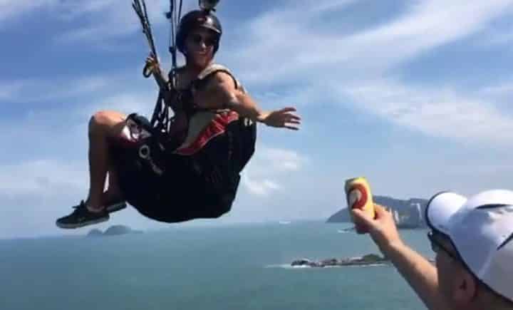 Cette vidéo est géniale ! Pourquoi ? Parce qu’on vous le dit, bien évidemment. On y voit un parapentiste se hisser doucement vers un balcon. La raison est très drôle. En effet, le petit Monsieur qui se trouve à son balcon lui tend une cannette de bière. Plutôt sympa. Le jeune homme parvient à saisir le précieux breuvage juste à temps. Son cri de joie nous a donné envie de faire du parapente en buvant une bière. Au Brésil. Oui, parce que ces images nous arrivent justement de la municipalité de Guarujá, située dans l’État de São Paulo. On peut ensuite le voir repartir et l’entendre dire « Santé ! » puis remercier l’homme qui lui a gentiment offert le rafraîchissement.