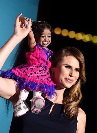 Jyoti Amge, que le livre Guinness des records présente comme étant la plus petite femme du monde, mesure 62,8 centimètres.