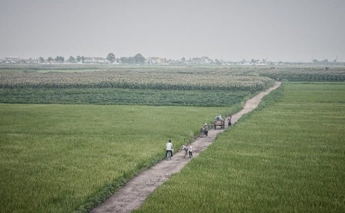 Beaucoup de personnes en Corée du Nord travaillent dans les champs. Les terres agricoles occupent une grande partie du pays.