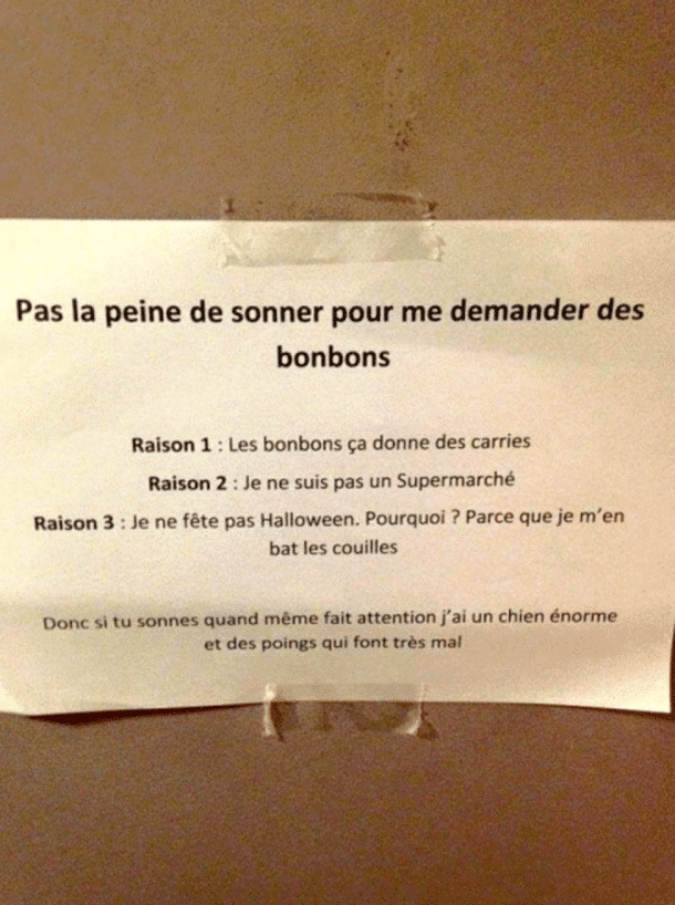 TDN > Insolite Les 50 mots les plus fous et drôles laissés par vos chers voisins ! Publié par Marie le 24 Jan 2024 à 16:55 Suivez nous sur Google News Partagez cet article Joyeux Halloween hein ! Veuillez laisser ce champ videRejoignez nos 875 726 abonnés en recevant notre newsletter gratuite N'oubliez pas de cliquer sur l'email de validation pour confirmer votre adresse email. Si vous ne l'avez pas recu vérifiez dans vos spams. Dernière étape pour confirmer votre inscription : il faut cliquer l'email de confirmation. Vérifiez dans vos spams si vous ne l'avez pas reçu ! A bientôt ! Page précédente Page suivante Laissez un commentaire Votre adresse e-mail ne sera pas publiée. Les champs obligatoires sont indiqués avec * Votre commentaire * Votre pseudo * Votre adresse e-mail * Cliquez ici pour commenter