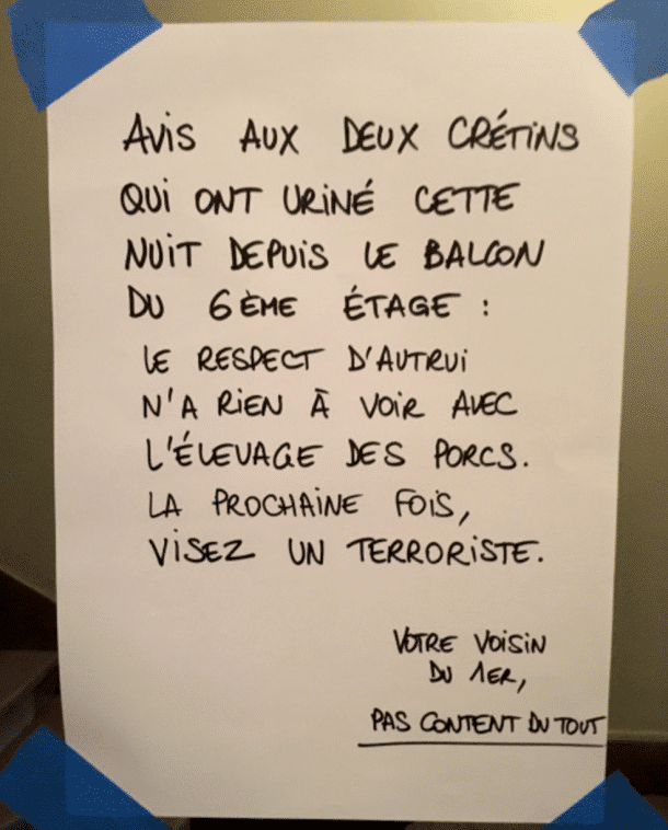 TDN > Insolite Les 50 mots les plus fous et drôles laissés par vos chers voisins ! Publié par Marie le 24 Jan 2024 à 16:55 Suivez nous sur Google News Partagez cet article DU TOUT DU TOUT ! Veuillez laisser ce champ videRejoignez nos 875 726 abonnés en recevant notre newsletter gratuite N'oubliez pas de cliquer sur l'email de validation pour confirmer votre adresse email. Si vous ne l'avez pas recu vérifiez dans vos spams. Dernière étape pour confirmer votre inscription : il faut cliquer l'email de confirmation. Vérifiez dans vos spams si vous ne l'avez pas reçu ! A bientôt ! Page précédente Page suivante Laissez un commentaire Votre adresse e-mail ne sera pas publiée. Les champs obligatoires sont indiqués avec * Votre commentaire * Votre pseudo * Votre adresse e-mail * Cliquez ici pour commenter