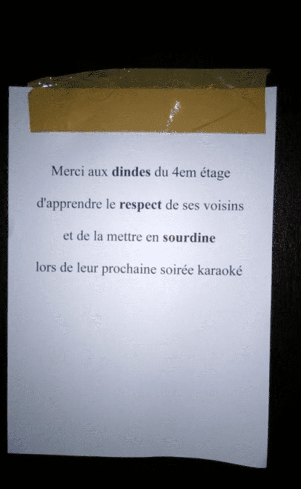 TDN > Insolite Les 50 mots les plus fous et drôles laissés par vos chers voisins ! Publié par Marie le 24 Jan 2024 à 16:55 Suivez nous sur Google News Partagez cet article Le voisin misogyne pas mélomane Veuillez laisser ce champ videRejoignez nos 875 726 abonnés en recevant notre newsletter gratuite N'oubliez pas de cliquer sur l'email de validation pour confirmer votre adresse email. Si vous ne l'avez pas recu vérifiez dans vos spams. Dernière étape pour confirmer votre inscription : il faut cliquer l'email de confirmation. Vérifiez dans vos spams si vous ne l'avez pas reçu ! A bientôt ! Page précédente Page suivante Laissez un commentaire Votre adresse e-mail ne sera pas publiée. Les champs obligatoires sont indiqués avec * Votre commentaire * Votre pseudo * Votre adresse e-mail * Cliquez ici pour commenter