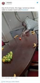 « Huitième jour à la maison. Cet homme a transformé notre table de dîner, en table de billard »