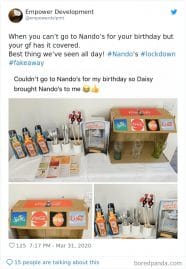 « Quand tu ne peux pas aller au Nando pour ton anniversiare mais que ta copine a tout prévu. Meilleure chose que nous avons vue »