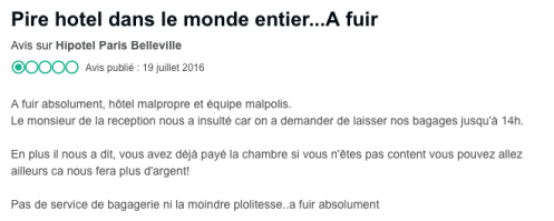 C’est l’été, et si vous avez de la chance vous allez sûrement partir en vacances. La grande aventure commence, la peur de l’inconnu vous hante mais la joie de la découverte vous anime. Ces pauvres clients ont vite déchanté lorsqu’ils sont arrivés sur les lieux, entre restaurants dégoutants, monuments décevants et hôtels répugnants, voici le meilleur du pire des commentaires TripAdvisor…