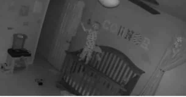 En pleine nuit, ce bébé monte et tient en équilibre sur la barrière de son lit d’une façon mystérieusement inquiètante