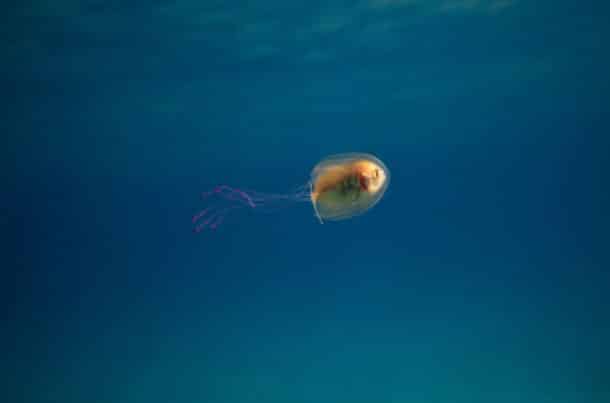 Tim Samuel explique que le poisson semblait libre de ses mouvements dans cette petite méduse transparente malgré les apparences. La nature est surprenante n’est-ce pas ? Tim Samuel explique qu’en 5 ans de photo, il n’a jamais capturé une scène aussi insolite ! On veut bien le croire…