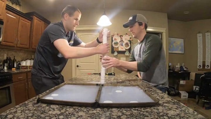 David Rush est bien connu des juges du Guinness Book. Cet Américain, originaire de l’Idaho, détient déjà 150 records du monde. Certes, ils ne sont pas tous « oufissimes » mais ils ont le mérite d’exister. Avec ses différents records, David espère promouvoir les « STIM », les disciplines scientifiques et mathématiques. Bien que son nouveau record puisse faire sourire, essayez de le faire chez vous et vous comprendrez qu’il n’est pas aussi simple qu’on le pense.