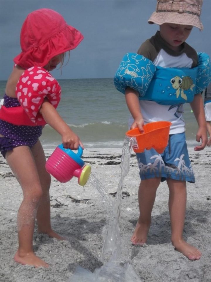 Avant toute chose, vous devrez creuser un trou assez grand. Pour que vos enfants puissent avoir assez de place. On dit « grand » dans le sens de large, mais le trou ne doit tout de même pas être trop profond. Une fois creusé, recouvrez ce trou à l’aide de votre rideau de douche. Prenez soin de remettre un peu de sable tout autour du rideau. Ceci afin qu’il soit bien fixé et ne bouge plus d’un pouce. Ensuite, munissez-vous d’un seau (ou plus) et remplissez le petit bassin que vous venez de créer avec de l’eau de mer. Vos enfants peuvent barboter tranquilou et vous pouvez même fabriquer cette petite installation tout près de votre serviette. Pour vous faire arroser tout l’après-midi, mais surtout, pour garder un œil sur vos canetons. On ne peut que vous recommander de renouveler l’eau en cours de journée.