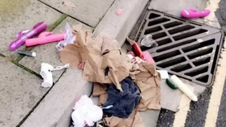 Imaginez que vous vous baladez en rue avec un sac en papier rempli de sextoys. Il est plus que probable que vous seriez en train de marcher la tête baissée avec un chapeau sur la tête craignant que les passants soient dotés de pouvoirs surnaturels et puissent voir à travers votre sac. Pas de panique, il est en papier, donc aucune crainte à avoir… sauf s’il se met à pleuvoir, que le sac se déchire, que les godemichés tombent à terre et que vous n’avez plus qu’une seule solution… fuir ! Regardez la vidéo pour voir la dizaine de sextoys, vibromasseurs et godes en tous genres, retrouvés éparpillés non loin d’une grille d’égout.