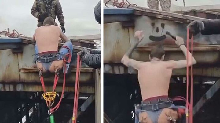 On dirait que certains cherchent vraiment à se faire mal. On peut aimer les sensations fortes, sans pour autant se mettre dans des situations encore plus dangereuses qu’elles pourraient l’être. Cet homme s’est jeté à l’élastique du haut d’un toit mais ce n’est pas tout… Comme vous pouvez le voir dans la vidéo, l’élastique était attaché à deux piercings dans la peau de ses fesses !