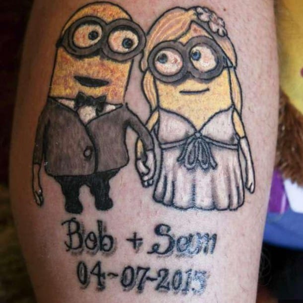 Bob Thomas s’est même fait tatouer deux Minions habillés en mari et femme, histoire de garder en tête cette cérémonie inoubliable.