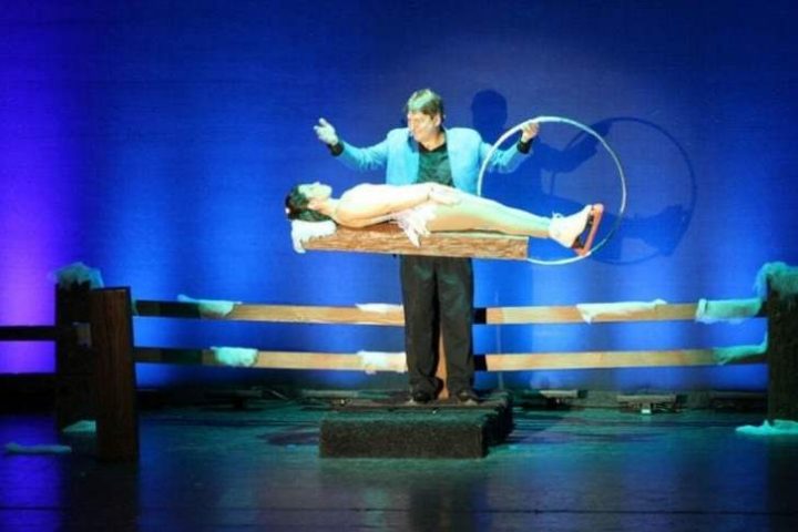 Ce tour de magie est sûrement l’un des plus impressionnants et repousse les limites de l’illusion. Maintenue en lévitation, l’assistante du magicien est suspendue dans les airs. Le tour prend une nouvelle tournure lorsque le magicien montre à l’aide d’un cerceau, qu’elle est nullement rattachée au sol.