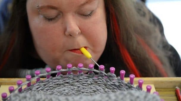 Une tétraplégique est passionnée par le tricot, qu’elle pratique avec la bouche !