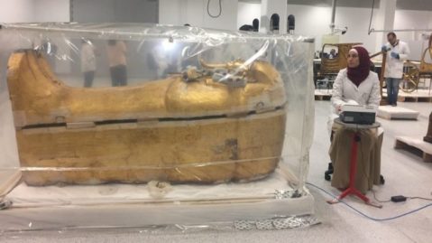 Khaled al-Enany donne quelques précisions concernant le procédé de restauration de Toutankhamon : « Nous avons transporté le sarcophage au musée, puis nous l’avons isolé pendant sept jours avant de commencer la fumigation « . L’objet étant bien évidement très fragile, il a été déposé dans une « cage » ou la température est minutieusement contrôlée. Lorsque la restauration prendra fin, il restera au Grand musée d’Egypte qui ouvrira en 2020 et sera rejoint par d’autres objets en rapport avec cette pièce unique.